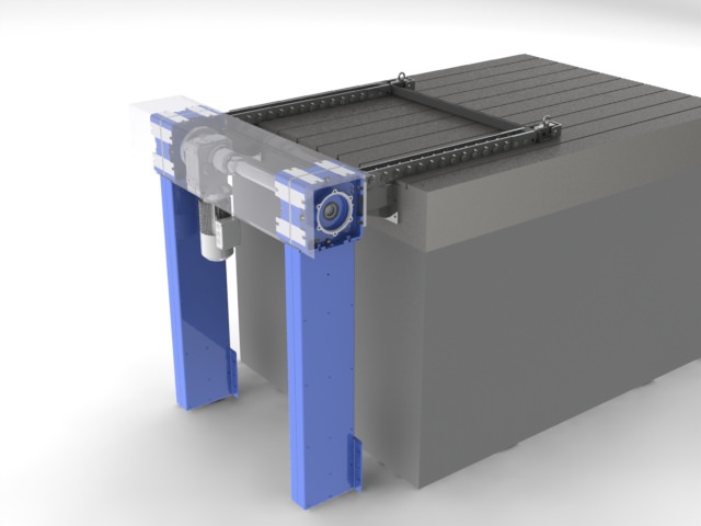 - Horizontale matrijstafel waarbij een laadsysteem wordt toegevoegd aan elke bestaande stapelaar of vorkheftruck